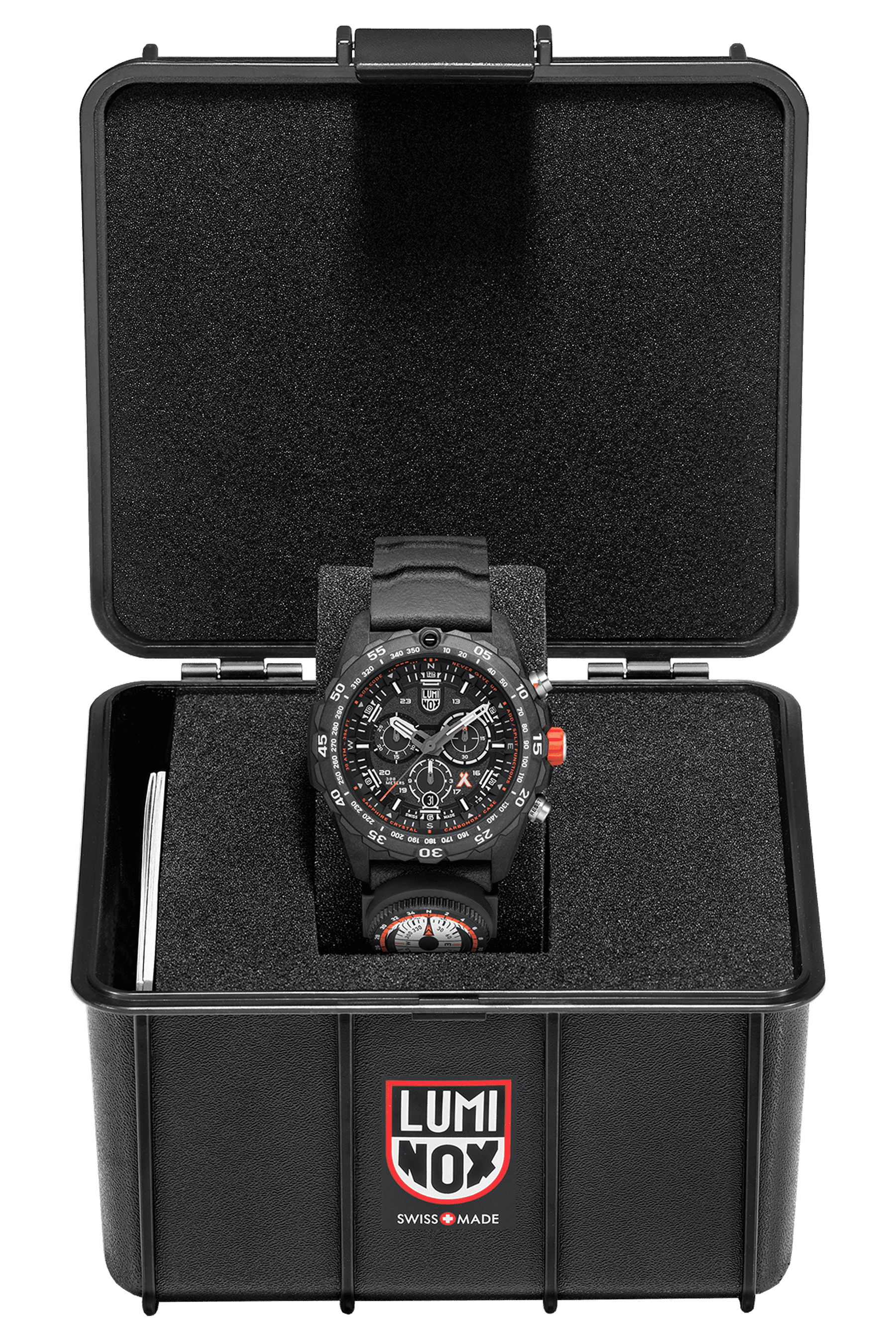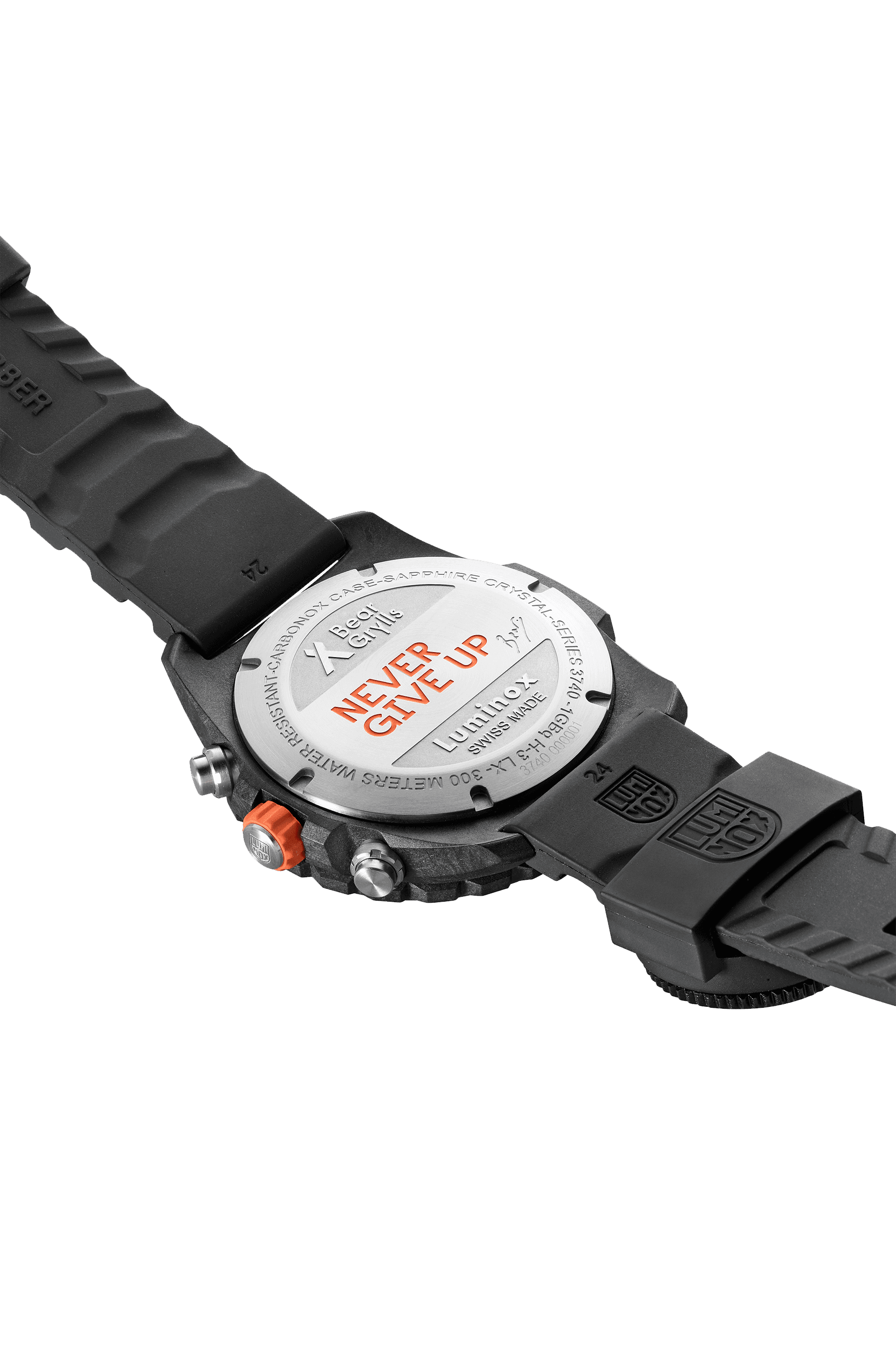 The Bear Grylls Survival Master Series is designed to be your trusty companion in any outdoor adventure The intricate dial features a chronograph fuctionality for timing events, underwater or on land with an additional date display at the 6 oclock A black durable rubber strap comes with a compass attached that can easily be slipped on and off, depending on the wearers choice As with any Bear Grylls watch, this watch features his signature orange crown