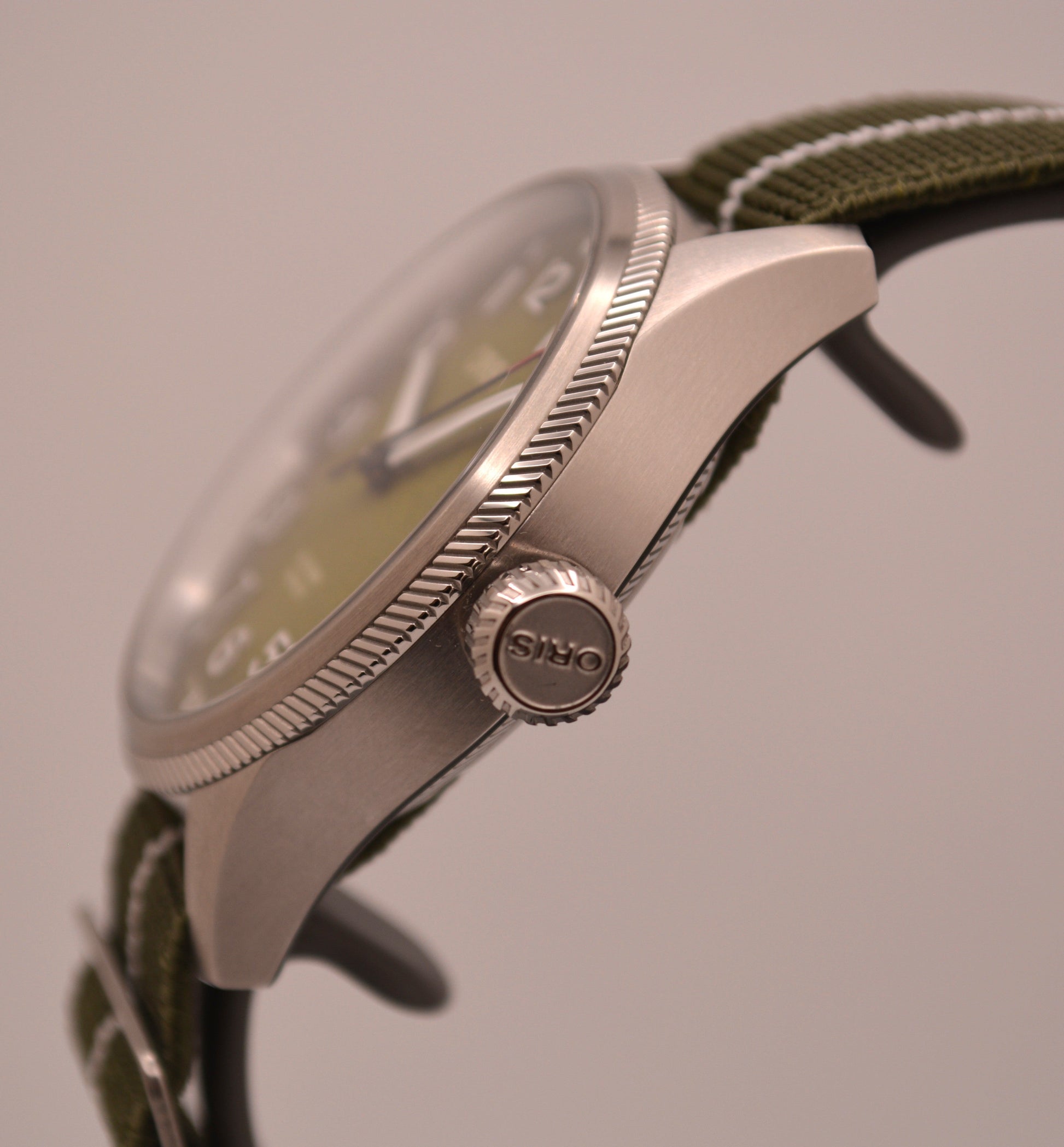This limited edition Oris is in excellent condition and has been rarely worn. The case is in 88% condition, the nato strap is in 85% condition. This watch comes with the box, papers and an extra leather nato strap.