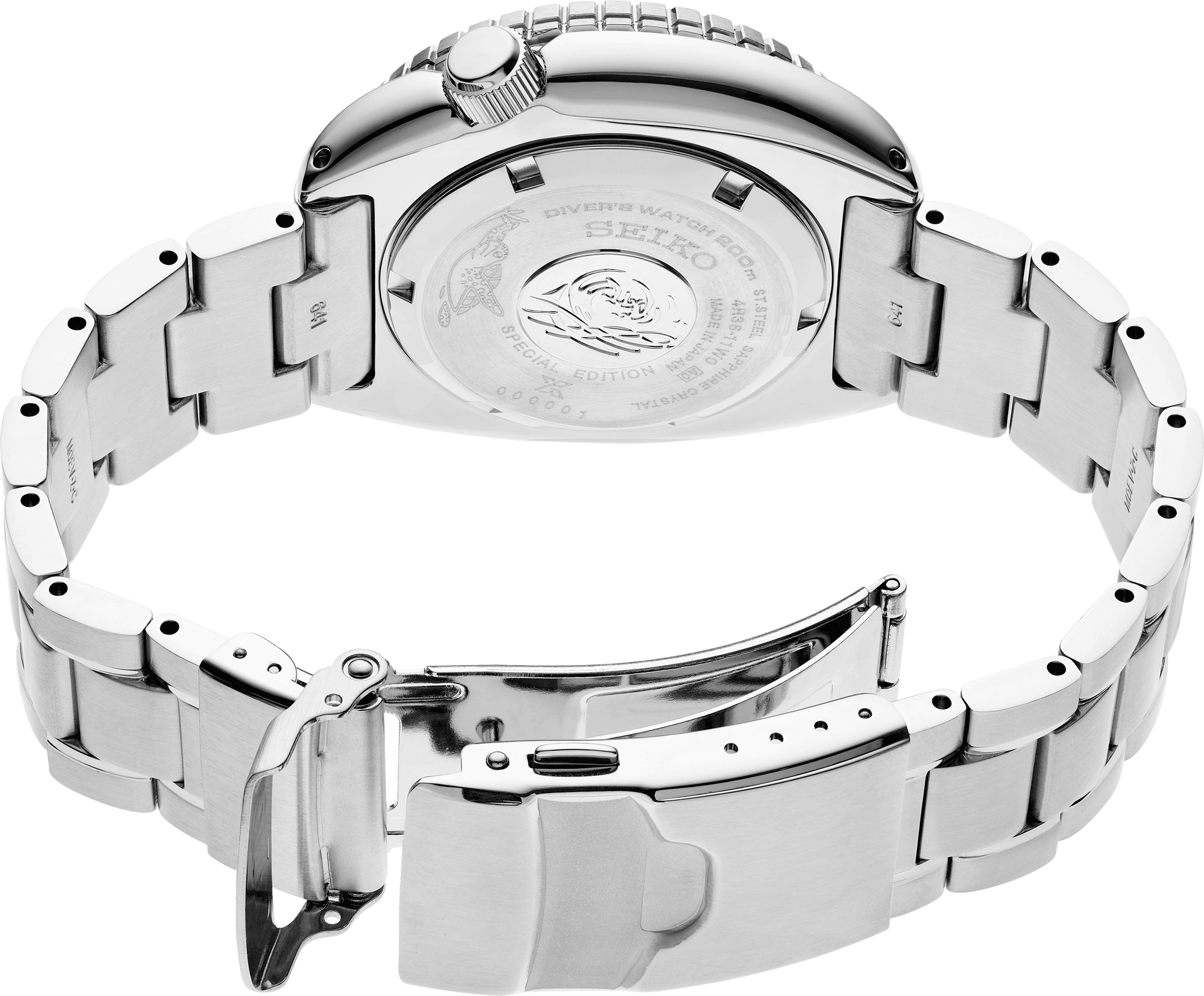 Prospex U.S. Special Edition. Designed for those who treat life as the ultimate adventure, Seiko Prospex keeps moving forward, meeting every challenge with technological excellence and winning design. With an intricately patterned brown dial inspired by turtle shells, this exciting Special Edition celebrates Prospex’s ongoing efforts to promote ocean exploration and conservation. For reliable timing in rough waters, the 24-jewel automatic movement, which beats at a frequency of 21,600 vibrations per hour, provides a power reserve of approximately 41 hours and offers manual winding capability. Framed by a black ceramic uni-directional rotating elapsed timing bezel, the dial features LumiBrite hands and markers, as well as a day/date calendar in both English and Kanji. Crafted of stainless steel, with scratch-resistant anti-reflective sapphire crystal, and secure screwdown crown and Special Edition caseback with sea turtle image, this durable timepiece follows ISO standards for scuba diving at depths of up to 200 meters. Includes additional brown silicone strap. 200m Water Resistant