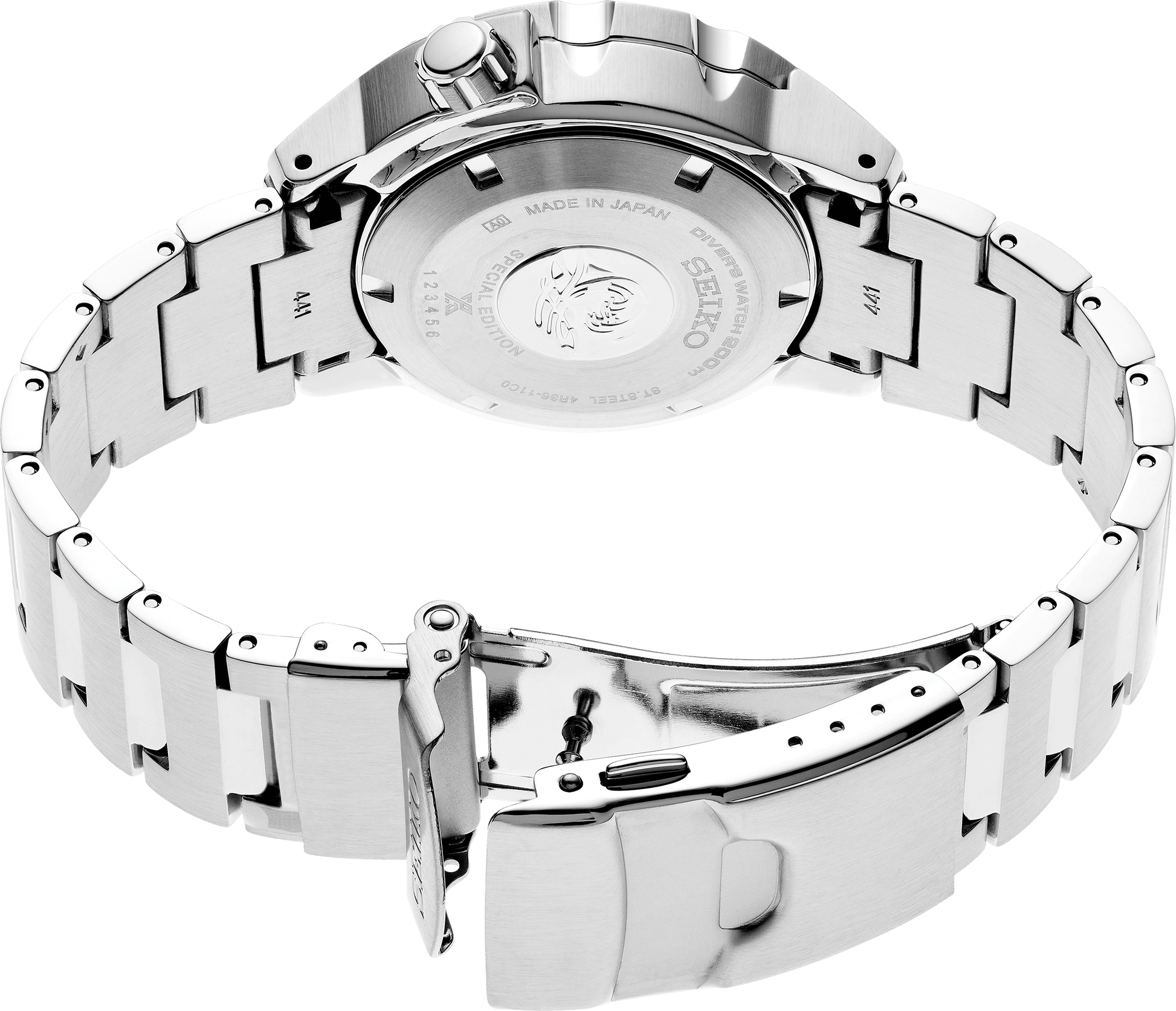 Prospex Special Edition. Designed for those who treat life as the ultimate adventure, Seiko Prospex keeps moving forward, meeting every challenge with technological excellence and winning design. With a gradient blue-green textured dial evoking the icy seas and the patterns of penguin footprints in the snow, this Special Edition automatic diver celebrates conservation efforts in Antarctica, the challenging environment in which the earliest Seiko diver’s watches proved their excellence as essential equipment for the Japanese Antarctic Research Expedition (JARE). Recalling one of Seiko’s most iconic diving styles, this rugged watch features a uni-directional rotating elapsed timing bezel with a deeply grooved edge. Providing reliable timing in the most demanding conditions, the 24-jewel automatic movement beats at a frequency of 21,600 vibrations per hour, with a power reserve of approximately 41 hours, and offers manual winding capability. With magnified day/date calendar, and LumiBrite hands and markers, this high-intensity timepiece, following ISO standards for scuba diving at depths of up to 200 meters, is crafted of stainless steel, with secure screwdown crown and caseback, as well as tri-fold push button release clasp with secure lock and extender. 200m Water Resistant