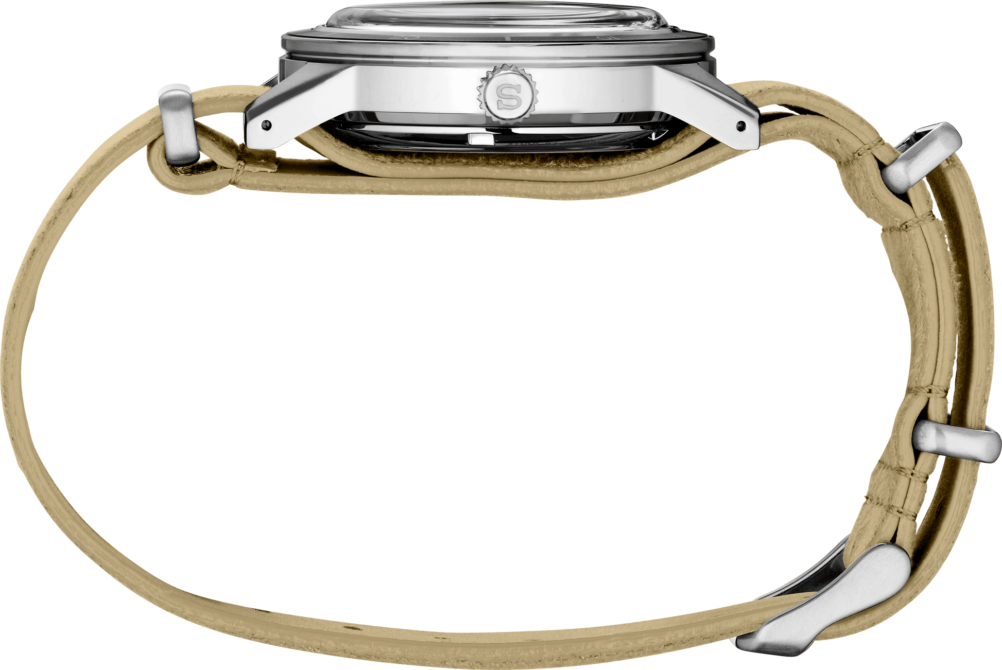 Presage Style ’60s Collection. Offering the finest in Japanese mechanical watchmaking, the Presage Collection blends precision technology with superior craftsmanship and design. With broad angular lines and such vintage details as box-shaped crystals, faceted indices and sharp hand design, plus the use of neutrals and earth tones, the Style ’60s collection creates a warm, retro feel. Celebrating the fresh spirit of the 1960s, the collection takes particular inspiration from Seiko’s 1964 “Crown Chronograph,” Japan’s first watch with a stopwatch function. Framed by a navy blue bezel, the navy blue dial of this eye-catching timepiece features beige LumiBrite hands and markers, and a 24-hour subdial, as well as a distinctive open-aperture, which, coupled with the screwdown see-through caseback, provides a second view of the 24-jewel movement with manual winding capability, a frequency of 21,600 vibrations per hour and a power reserve of approximately 41 hours. Crafted of stainless steel, this exceptional watch includes a box-shaped crystal, as well as a light brown suede-texture strap. 5 bar, 50M Water Resistant