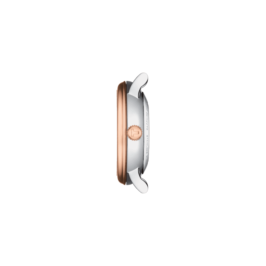 The Tissot Carson Premium is a timeless piece which will suit any time and place. The dial is pure with a recess in the center. There is a play on the external satinated sunray finish and the inner spiral finish which gives a certain profundity. The see-through caseback shows the ETA 2671 movement decorated with the waves of time.