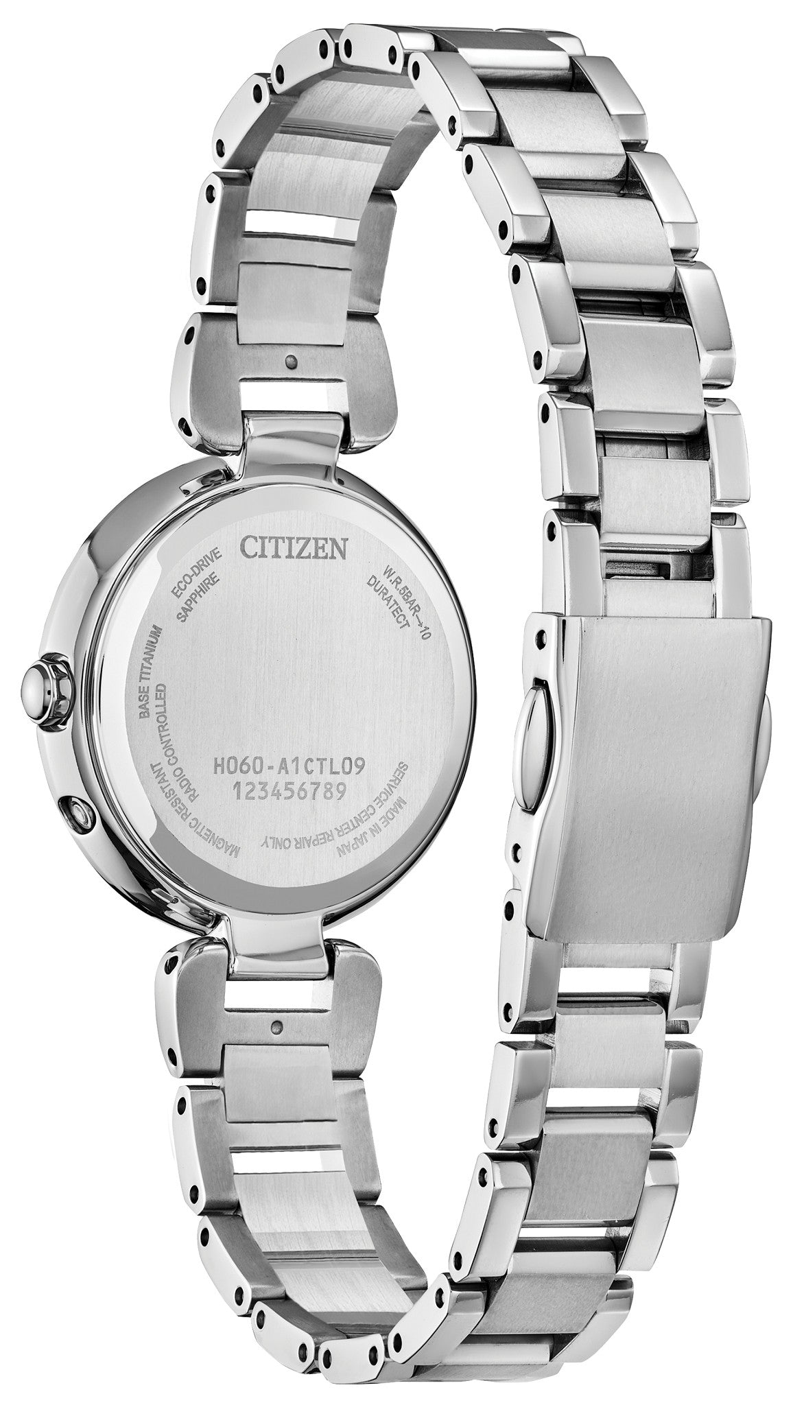 Inspired by the beautiful oceans that unite the world, the watches of Citizen's UNITE with BLUE series join the colors of the seven seas on one 100% recycled polycarbonate dial. This example, which comes as part of the lovely Classic Eco collection marks a unique take on the elevated, sustainable style. The delicately proportioned silver-tone Super Titanium™ case frames a rich blue and green colored display, with a matching integrated bracelet securing the timepiece to the wrist. The special Unite with Blue iridescent dial is encased in a sapphire crystal that adds clarity to the vibrant design details, including diamonds and precision-cut decorations reminiscent of bubbles rising to the surface. Featuring our proprietary Eco-Drive technology that’s sustainably powered by any light and never needs a battery, this timepiece delivers style and function and will add modern elegance to your wardrobe. Caliber H060. This style is part of the UNITE with BLUE collection, which highlights Citizen’s commitment to sustainability including a Promaster Dive model and CITIZEN L Bianca style. Sustainably powered by the brand’s proprietary Eco-Drive*1 technology, both timepieces feature a structural color dial, inspired by the oceans that unite the world.